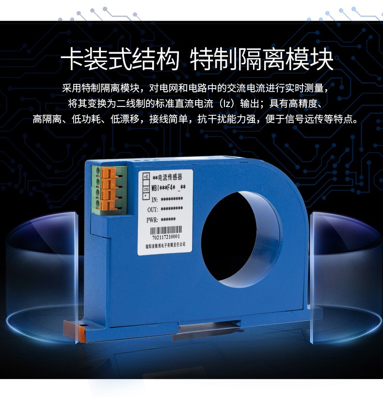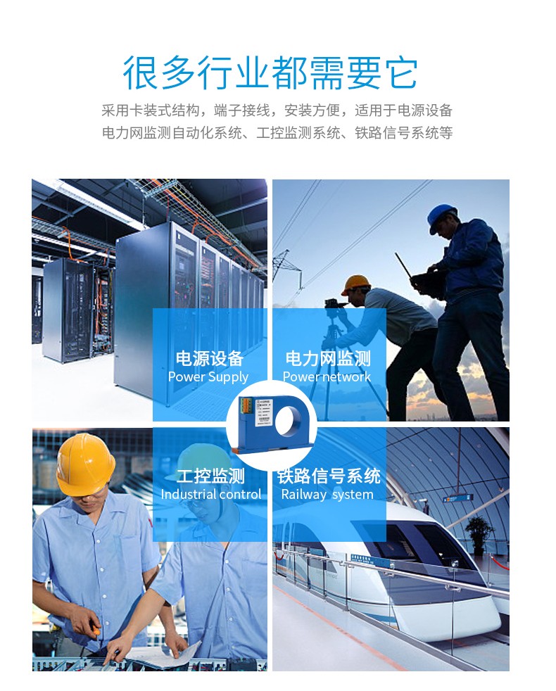 本產(chǎn)品采用特制隔離模塊,對電網(wǎng)和電路中的交流電流進(jìn)行實時測量,將其變換為標(biāo)椎的直流電流(Iz)輸出(兩線制);具有高精度、高隔離、寬頻響、低漂移、低功耗、溫度范圍寬、抗干擾能力強等特點。本產(chǎn)品采用卡裝式結(jié)構(gòu),端子接線,安裝方便,適用于電源設(shè)備、電力網(wǎng)監(jiān)測自動化系統(tǒng)、工控監(jiān)測系統(tǒng)、鐵路信號系統(tǒng)等。