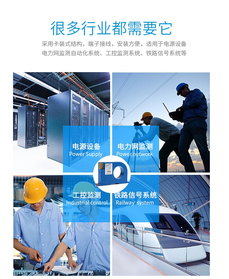 本產(chǎn)品采用特制隔離模塊,對(duì)電網(wǎng)和電路中的交流電流進(jìn)行實(shí)時(shí)測(cè)量,將其變換為標(biāo)椎的直流電流(Iz)輸出;具有高精度、高隔離、寬頻響、低漂移、低功耗、溫度范圍寬、抗干擾能力強(qiáng)等特點(diǎn)。本產(chǎn)品采用卡裝式結(jié)構(gòu),端子接線,安裝方便,適用于電源設(shè)備、電力網(wǎng)監(jiān)測(cè)自動(dòng)化系統(tǒng)、工控監(jiān)測(cè)系統(tǒng)、鐵路信號(hào)系統(tǒng)等。